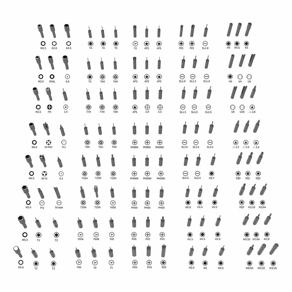 MULTIPLE MODEL: Mini magnetic computer screwdriver set with 120 different types of screwdriver drill, Clutch Head screwdriver, Flat, Frearson, Hex, Penta lobe, Phillips, Posidrive, Spanner, JIS, Security Torx, pentalobe, Square, Torx, Star, Tri-Angle, Tri-Point, Tri-Wing, pentalene, etc. Screwdriver size 4/1 inch, universal most precision screwdriver sets, can be used as accessories.