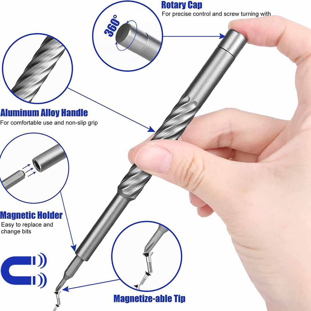 HIGH QUALITY & AFTER SALES SERVICE: screwdriver bits made of S2 tool steel, with the frosted coating to prevent corrosion, wear-resistant, durable, strong torque, and high hardness, each screwdriver bit There are marks on the body, no need to worry about using the wrong model. Small Screwdriver repair tool set was designed in Germany and assembled in China, the product has undergone strict quality testing and provides 30 days of free return service, and a lifetime warranty.