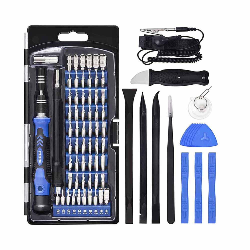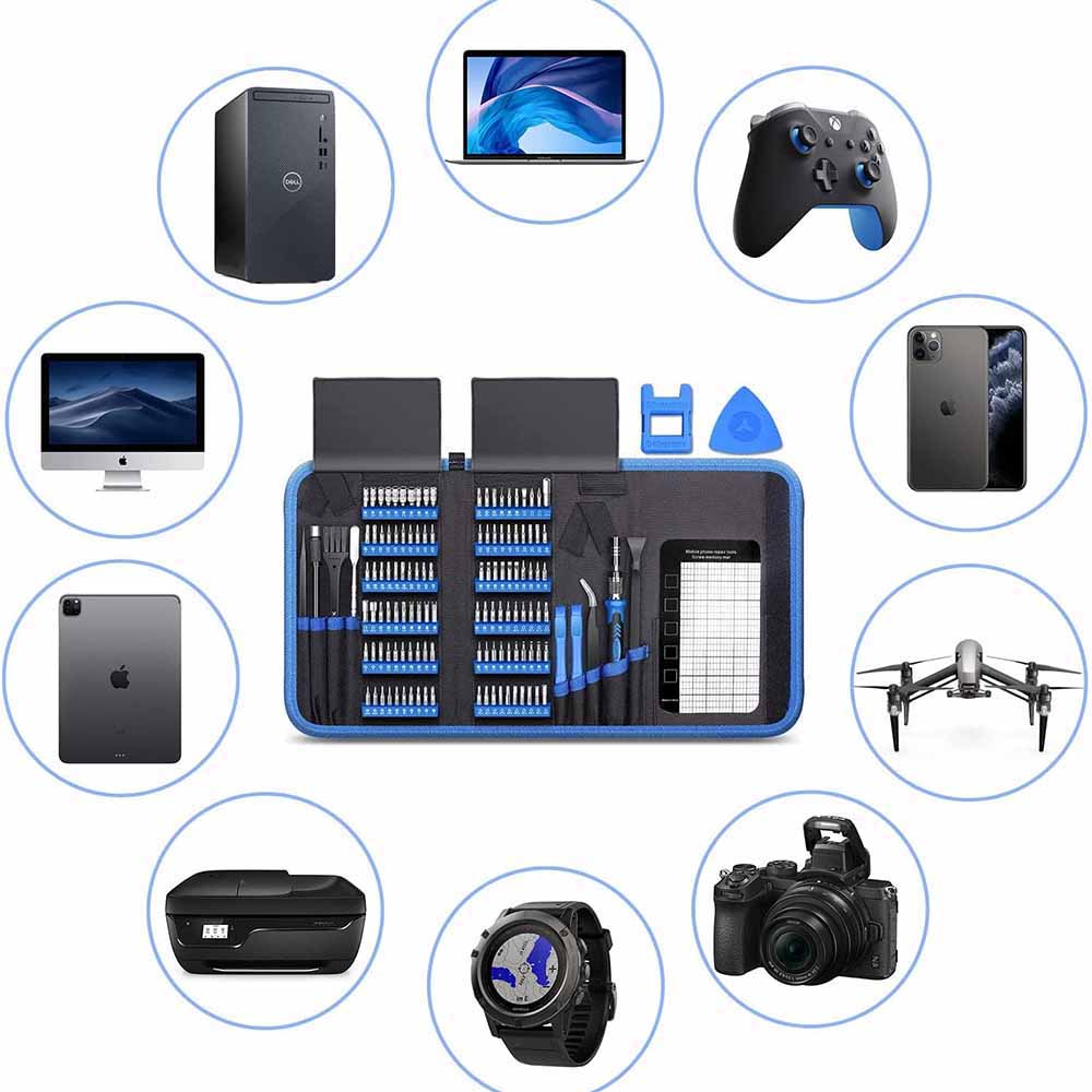 【Multi-function set】 This computer tool kit contains 120 precision bits with a size of 4mm, and 20 practical accessories, such as screwdriver handles, extension rods, crowbars, magnets, etc. The laptop screwdriver kit is capable of repairing various electronic products such as computer, laptop, tablets, iPhones, ps4, Xbox, toys, glasses, lamps, Small appliances, etc. For example, changing screens, replacing electronic vital parts, cleaning, dismantling, and reorganizing construction equipment.