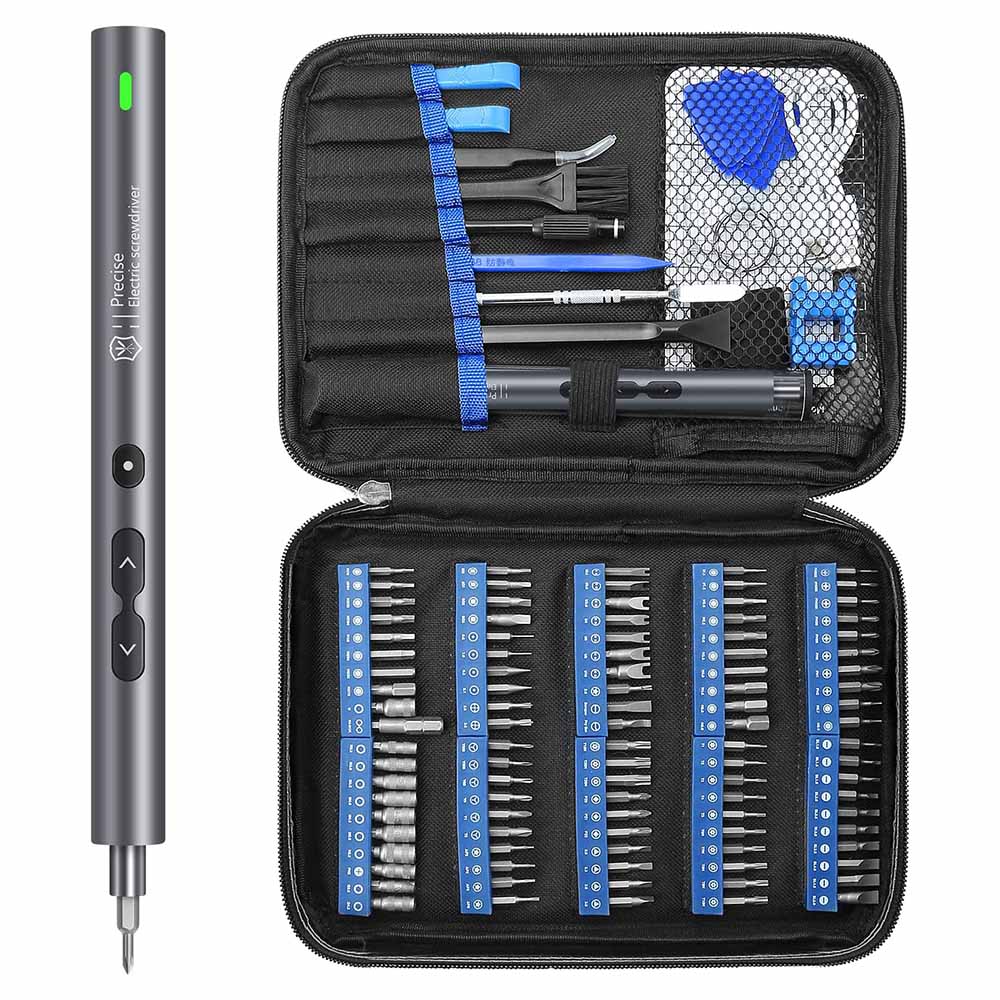【𝐏𝐚𝐜𝐤𝐚𝐠𝐞 𝐂𝐨𝐧𝐭𝐞𝐧𝐭𝐬】1 Mini electric screwdriver; 100 precision bits; 1 extension rod, 1 Magnetizer, 1 magnetic pad, 1 USB charging cable, and 15-bit Tool Set. handbag 30-day money-back guarantee and 12-month warranty. If you have any issues, please feel free to contact us in the first time. We will solve this issue for you without any hesitation. It is a very suitable birthday/ Thanksgiving Day/ Christmas/ valentine's day gift for family and friends.