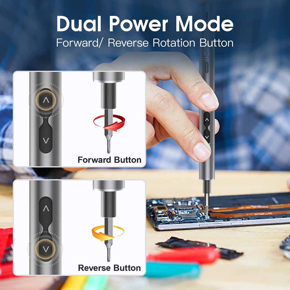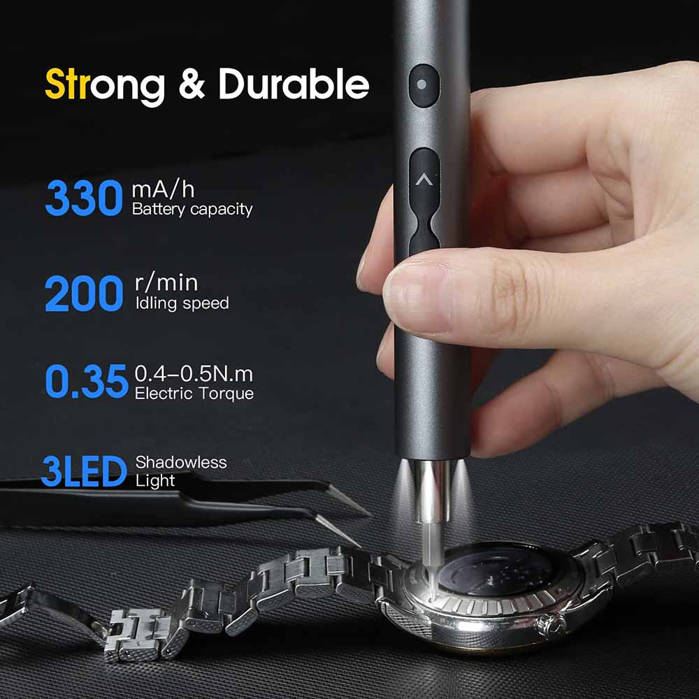 【𝐒𝐦𝐚𝐥𝐥 & 𝐏𝐨𝐰𝐞𝐫𝐟𝐮𝐥】This small electric screwdriver has a rotating speed is 150r/min, automatic/manual mode with 0.25-0.35/3N.m torque, and works continuously for 3 hours, which has totally power enough for your electronic repair working.