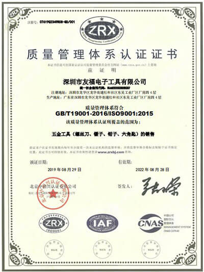 Our hand tools are made of #45 carbon steel or chrome-vanadium steel (CRV) and are properly heat-treated and chrome plating. Our toolboxes and fabrics are made of super heavy materials. Our products have passed industry-standard tests for hardness, torque, surface finish, and usability, and the tool life can be as long as several decades under normal household use. Our factory has passed the ios9001 quality system, CE, UL, SGS, FCC, and 3C certifications.