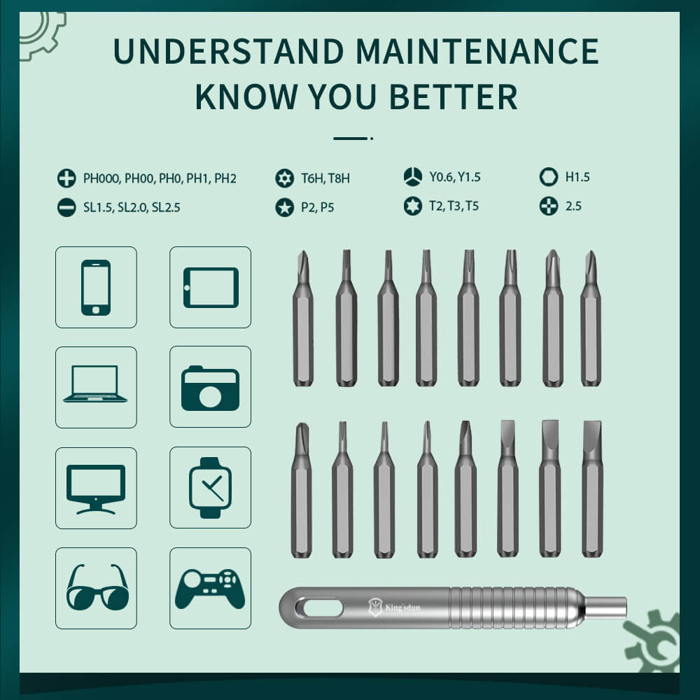 The exquisite design of the receiving box meets most daily needs. The 20 high-precision batches of the screwdriver are refined.