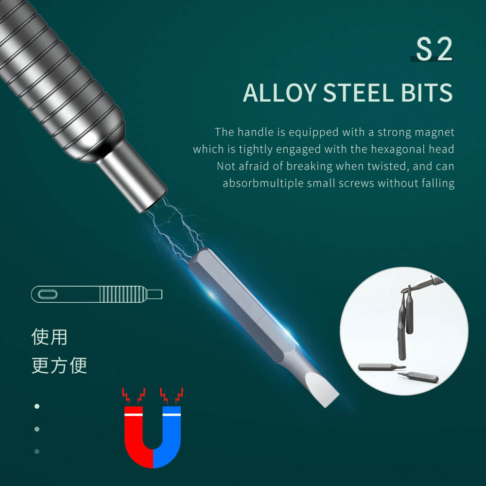 Built-in Strong Magnetic Easy to Plug, Bits head with magnetic can easily absorb screws.