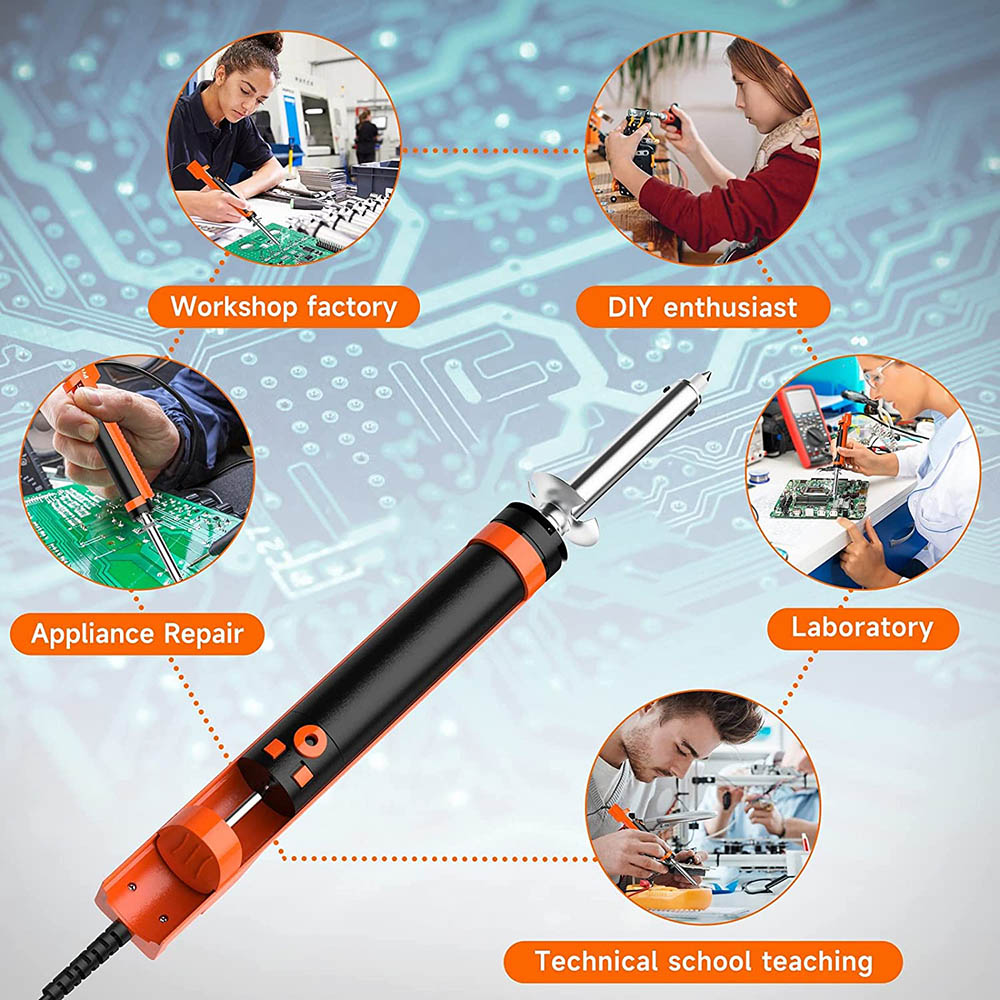 ✿HIGH-QUALITY MATERIALS: Made of ABS material, with anti-skid handle, nylon nozzles,Unlike the old-fashioned desoldering gun, this solder sucker is plugged into the power plug, and the desoldering is preheated for about 3 minutes, and the process of tin melting/absorption can be performed, Comfortable grip and durable.