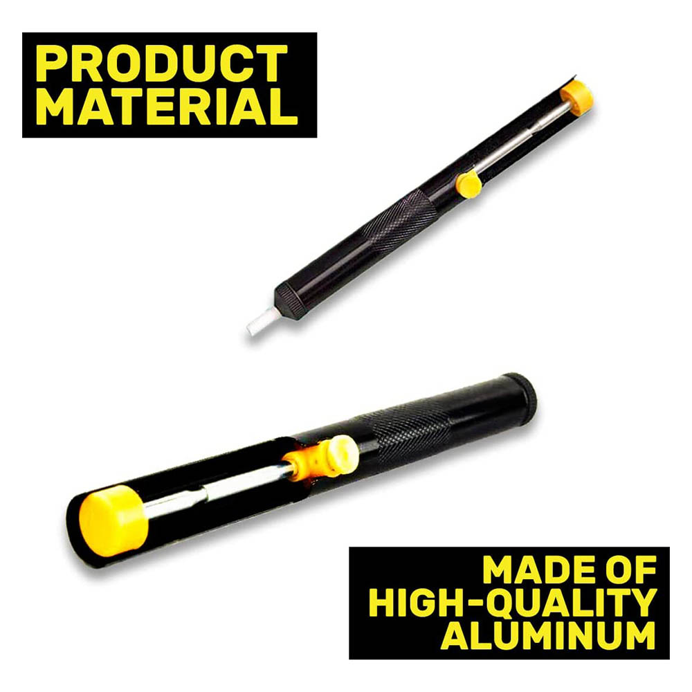 Solder sucker desoldering pump made of high-quality ABS plastic with aluminum alloy, soft anti-skid handle of sucking vacuum desoldering pump, replaced tips, economical and easy to operate and cleanDesoldering pump is the most easy solution for removing solder, the desoldering pump designed for one-