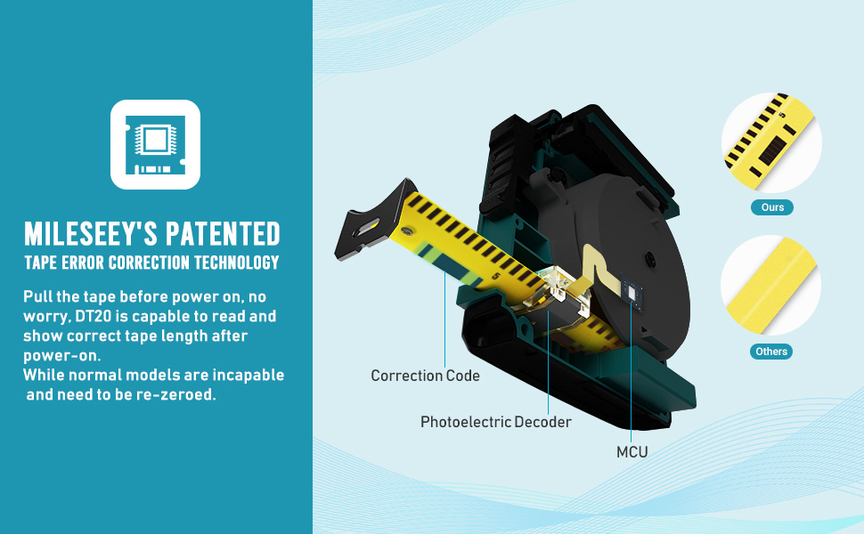 DATA SYNC DISPLAY TECHNOLOGY - The DT20 Digital Tape Measure is the world's most productive tape measure delivering fast, accurate, and forget-free measurements with robust digital measuring technology. With MiLESEEY's patented PowerBrust Digital Display technology, real-time precise figures are displayed on the screen when you pull out the measuring tape, FAST & ACCURATE! Precision Laser: Laser class II <1mW ensures accurate and safe measurements for your projects.