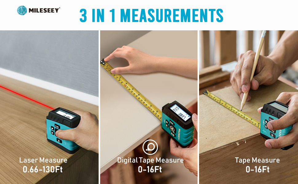 ADVANCED TECHNOLOGY & DIGITAL ACCURACY - MiLESEEY owns advanced optical decoding and tape error correction technology, brings an industry-leading accuracy and most stable performance. 130FT Laser Distance Measure accuracy up to ±1/8inch; laser safety level-Class II, <1mW. 16FT Digital Tape Measure accuracy up to ±1/16 inch. The blade has English and metric units along two sides.