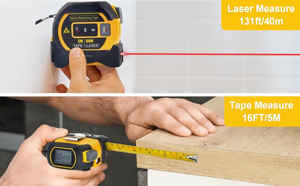 3-in-1 Digital Laser Tape Measure - 131Ft Laser, 16Ft Retractable, LED Display
