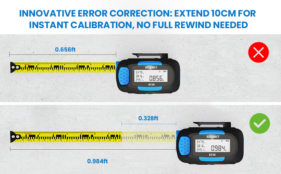 [Experience Effortless Accuracy with Smart Auto-Calibration] Gone are the days of manual adjustments and guesswork. Our laser measuring tape features smart auto-calibration technology that ensures pinpoint accuracy with every measurement. Whether you're extending the blade or navigating tricky angles, rest assured that you'll always get precise readings, making it an indispensable tool for professionals and DIY enthusiasts alike