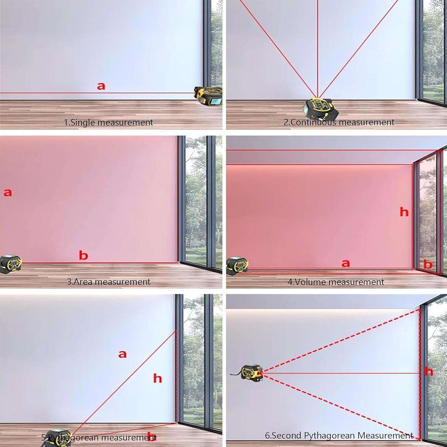 laser level line, laser level center. This tool combines a tape measure,