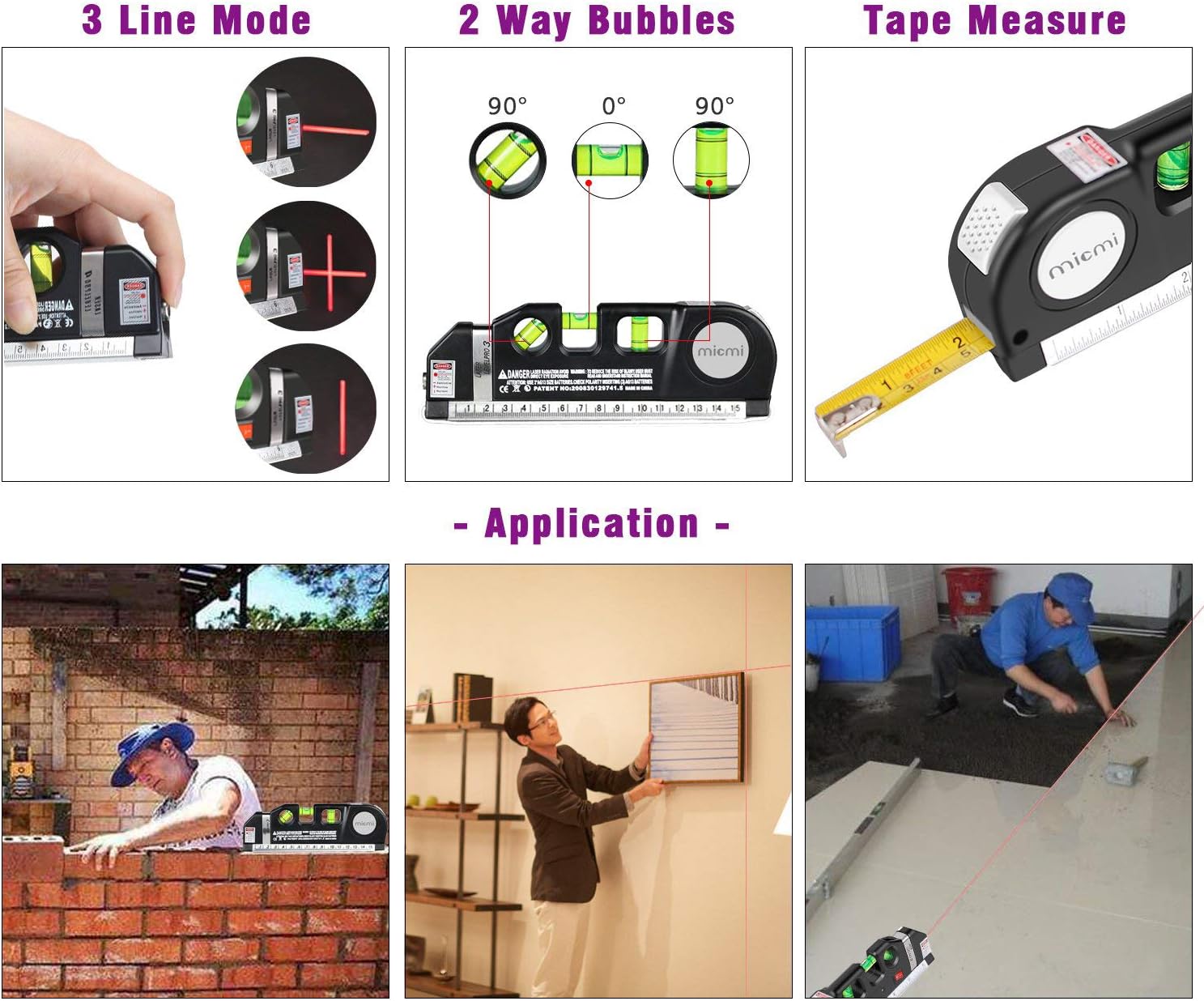 3-PRONGED APPROACH - combines a fine-tuned tape measure, a triple-positioned leveling bubble