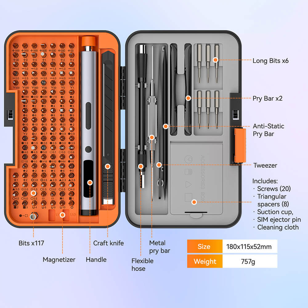 This all-in-one tool kit includes 123 drill bits and a wide range of accessories, offering excellent versatility for home repair, furniture assembly, electronics maintenance, and DIY projects.