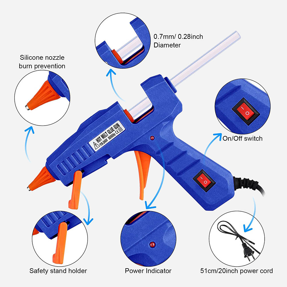 Quality and Reliable Material: mainly made of quality metal and plastic material, the hot glue gun kit is stable in structure, not easy to break, deform or fade, each glue gun comes with a removable rubber protective nozzle, convenient for your use