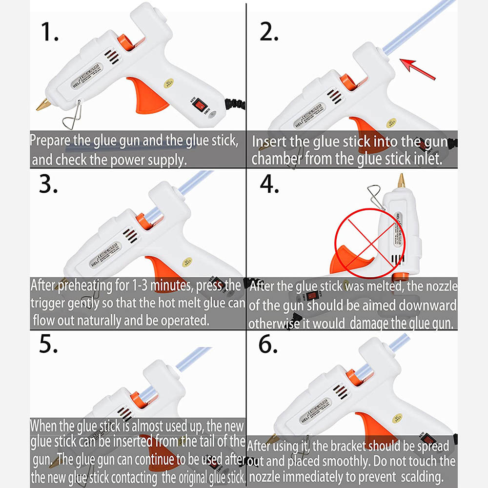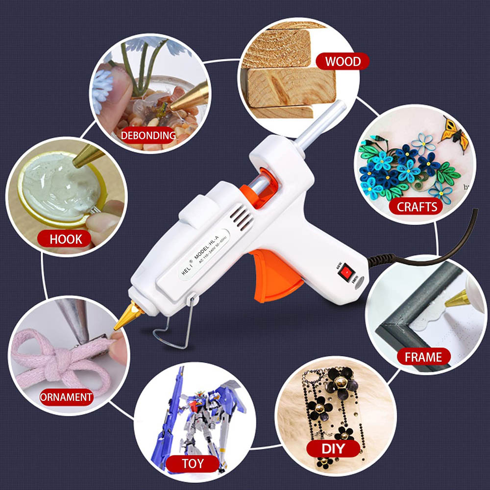 【KEEP CONSTANT TEMPERATURE】The hot glue gun can keep constant temperature, making the hot glue gun a perfect tool for school DIY, small arts & craft making. The hot glue gun can be used as an repairing tool for small cracks of furniture, household appliances, toys, shoes, glass fish tank, circuit board, etc.