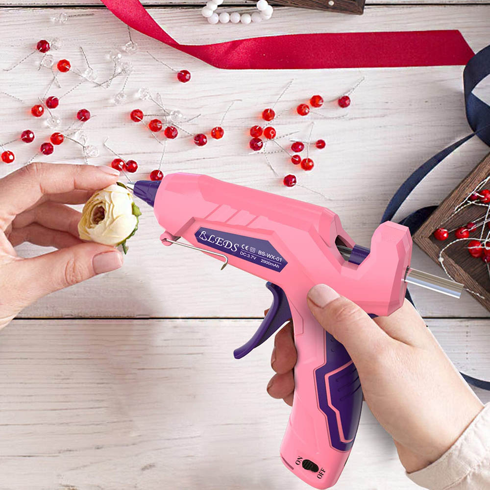 ✅【Long Battery Life & On/Off Switch】- Cordless hot glue gun built-in a 2900 mAh premium Li-ion battery, which supports to use continually for 60-90 minutes. It takes about 2-4 hours to fully charge. Please use a 5V-1A or 5V-2A charger to charge this wireless glue gun.