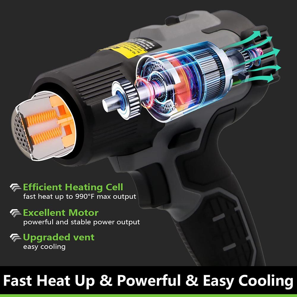 ✔【Upgrade Cordless & Compact】:Upgrade cordless heat gun get rid of the limitation of the cord & compressor,portable for anywhere and convenient to use in different environments. Compact design for fitting into tight spaces.