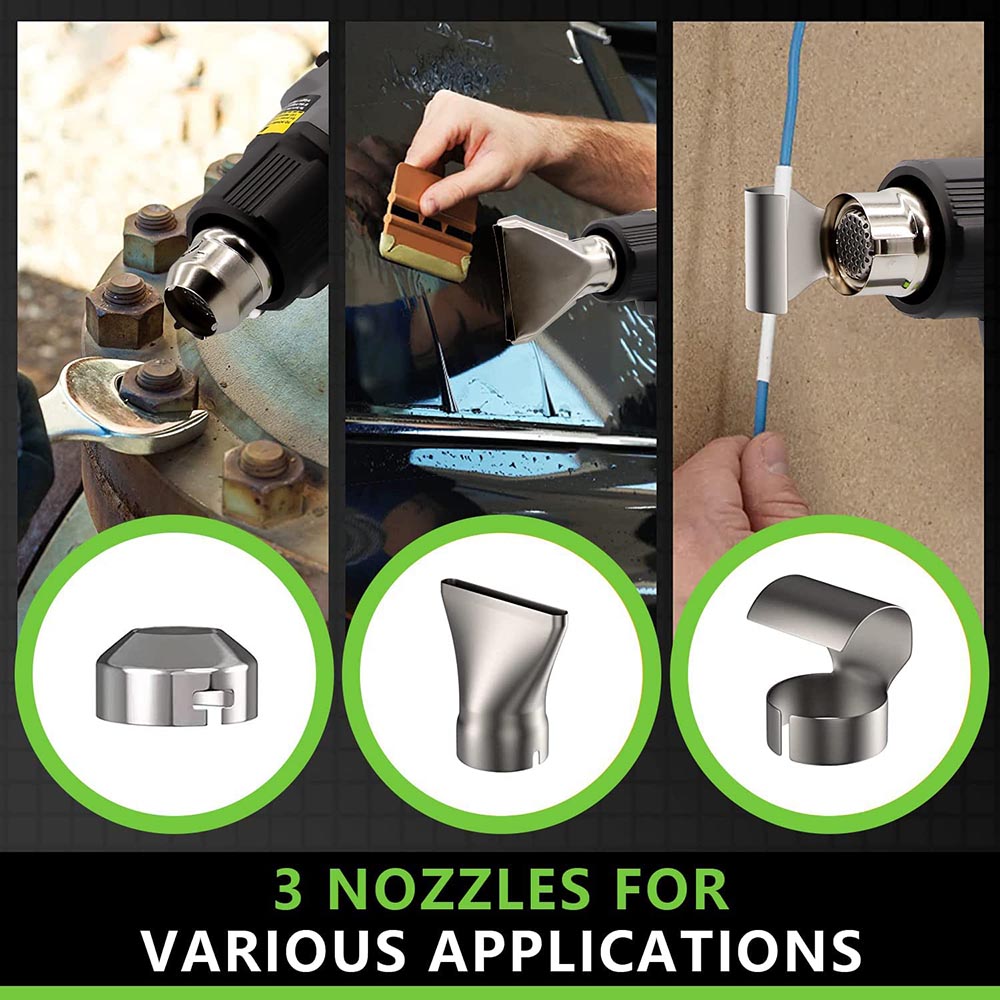✔【What You Get】:1 x 20V Cordless Heat Gun, 1 x 5.0Ah Battery Pack, 1 x Charger, 1 x Operator’s Manual, Versatility-3 Types of Nozzles-- shrink wrapping, vinyl wrap, paint stripping, tube bending, crafts, cell phone repair, car wrapping, stickers, sterilization and more.