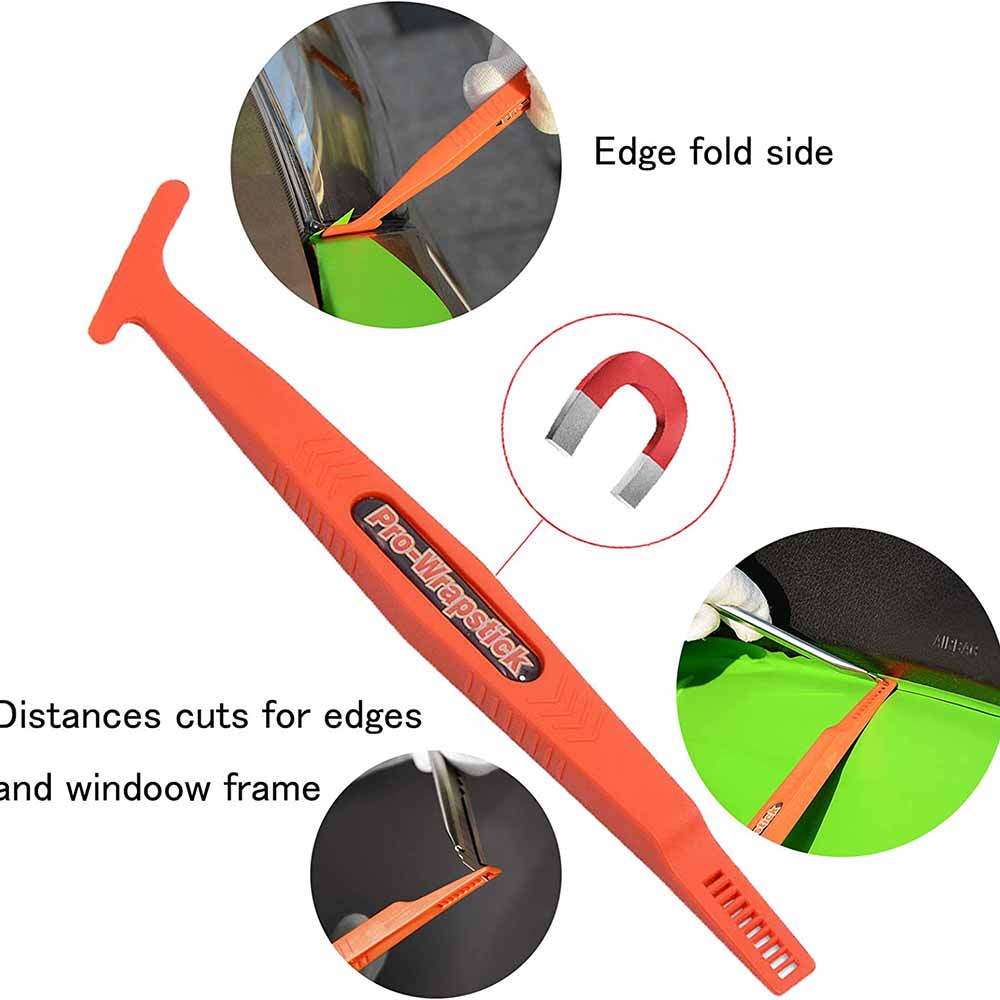 Orange magnetic wrap stick squeegee is used in narrow, concave parts of the car, helpful for tucking on window molding/trim and film edge folding. Also it has a scale part to make a distance cut between frame and gap.