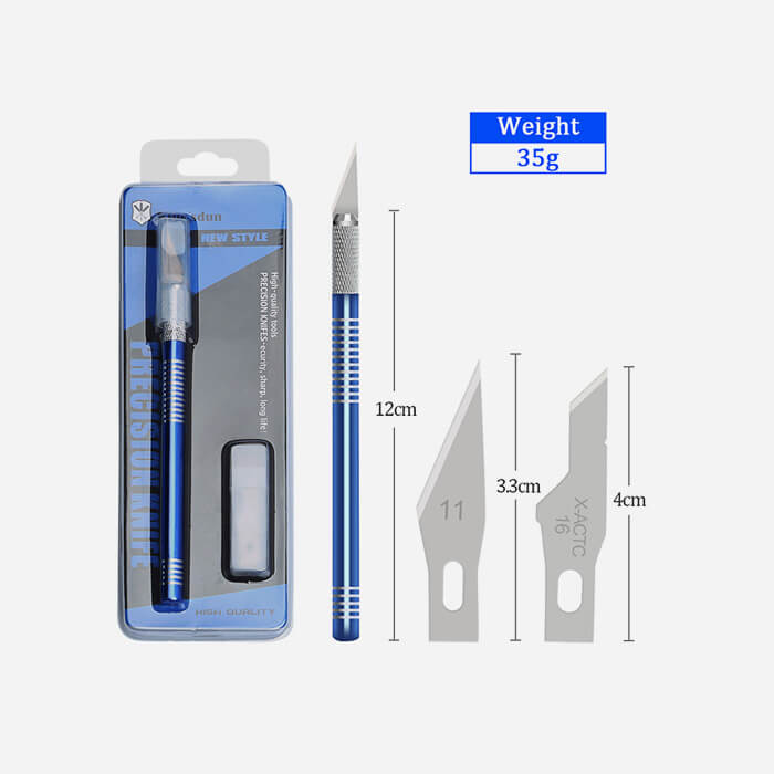 Ideal for precision cutting of models, art work, wood, cardboard, wallpaper, foil and thin plastic sheets, etc.5 repaceable blades available, you don't need to worry about the replacement of the blades.With protective cap to cover the blade, it can aviod unecessary cutting as the blade is very s
