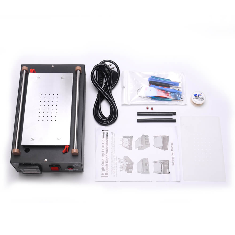 1.Built-in vacuum pump2.Material: sheet metal3.UY-100 more precise temperature controller; 4.Smooth heating plate surface5.LCD screens can be firmly fixed on the panel6.For any 2.5~7 inches LCD screens7.Heating Area(mm):100*2008.Power:600W;9.Voltage:AC100 ~240V;