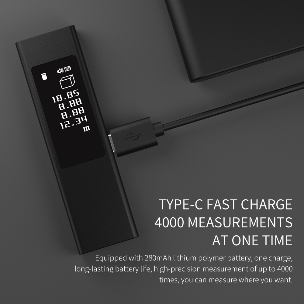 1. Full touch OLED hidden screen, minimal interaction design, smooth and smooth, bring a comfortable experience, feel the cool operation experience brought by black technology.2. Lightweight, mini portable, a variety of practical functions, a finger-sized body, a 1S distance measuring room