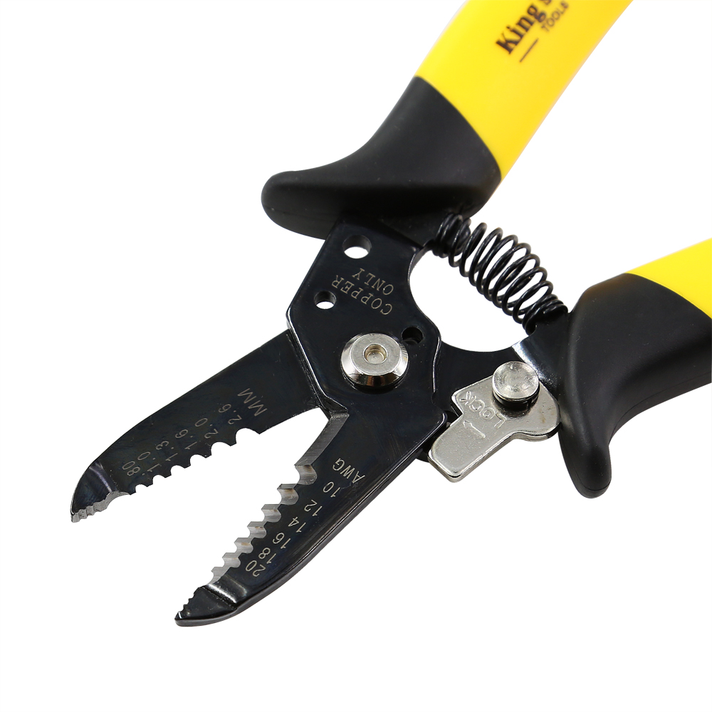 Model Number: KS-205021.Type: Combination Pliers.Material: Alloy Carbon Steel.Product name: Wire Stripping Plier.Shell Color: Black & Yellow.Handle length: 105 mm.Weight: 0.16 kg.Stripping diameter: 0.6-2.6 mm.Handle material: Two-color plastic.Total length: 180mm.