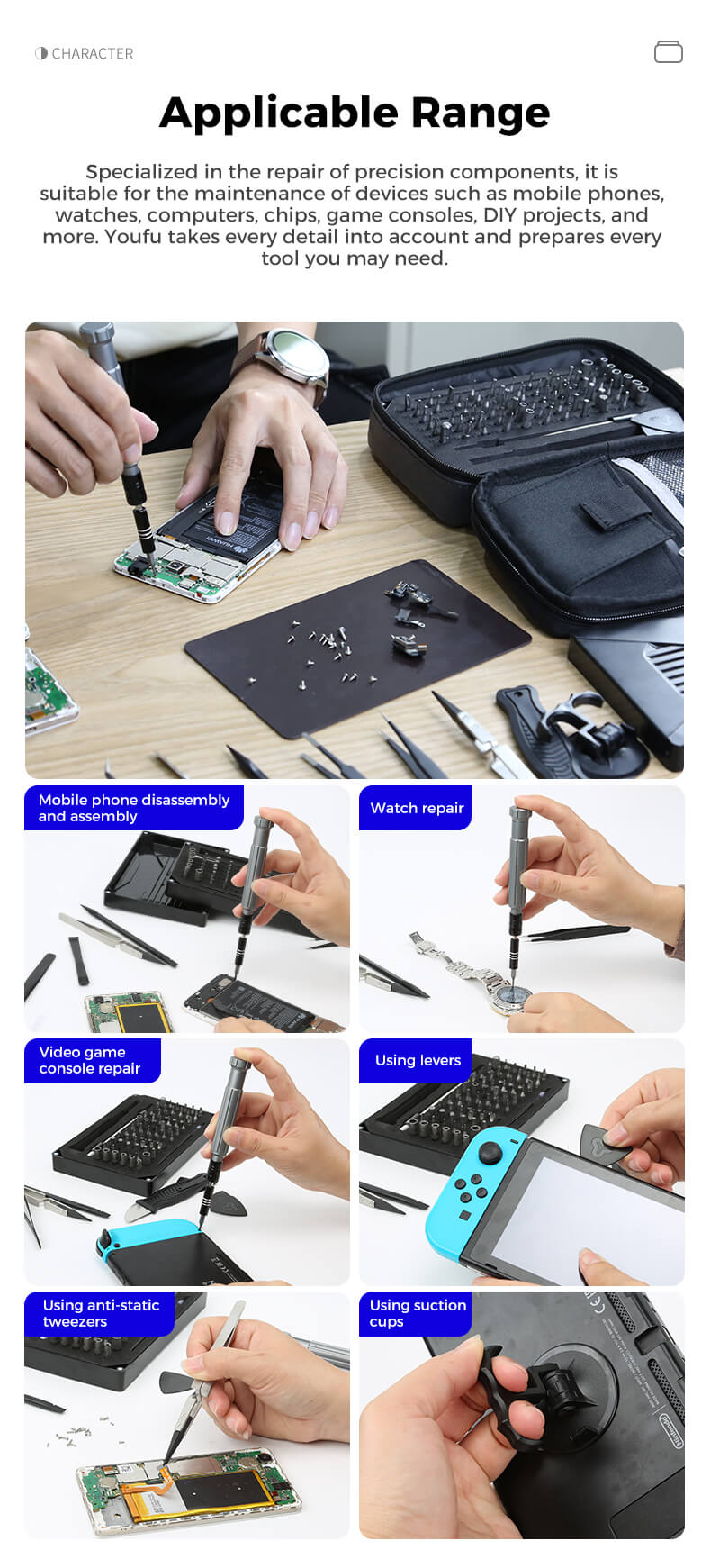 Shenzhen Youfu Tools Co., Ltd.'s products are mainly precision repair tools, screwdrivers which for repairing electronic products such as computers, mobile phones, cameras, game consoles, clocks, watches, toys, etc.
