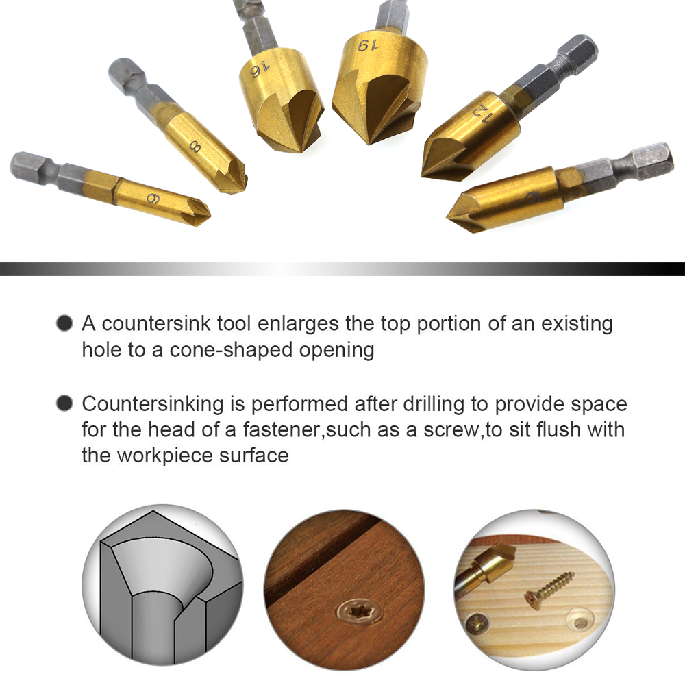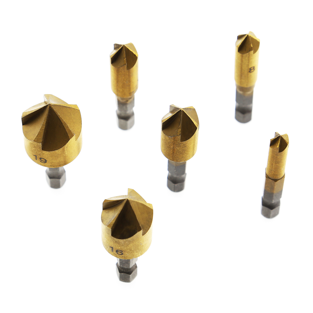 6PCS Wood Drill Bits 5 Flute Chamfer 1/4" Hex Shank
