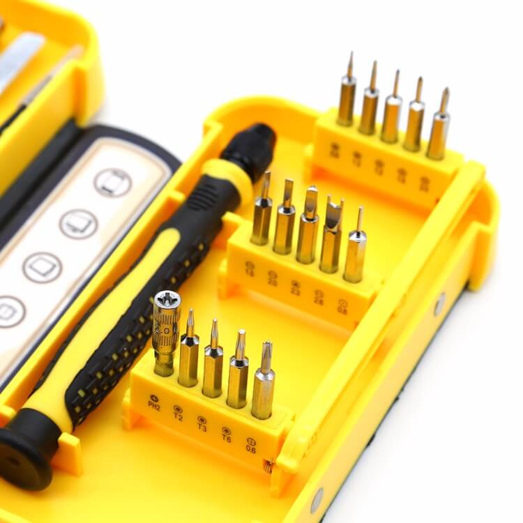 Including 15 kinds of Screwdriver Bits, 0.8 Pentalobe, Extension Bar, Stainless Steel Tweezer