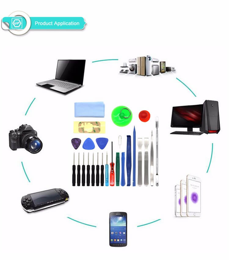 Description:Professional screwdriver & prying tool kitEasy to use and handleScrewdrivers with anti-slip handle and magnetic tipsMade of high quality material, durableProfessional repair tools aim to giving assistance during devices repairingIdeal for the preservation and maintenance of the preci