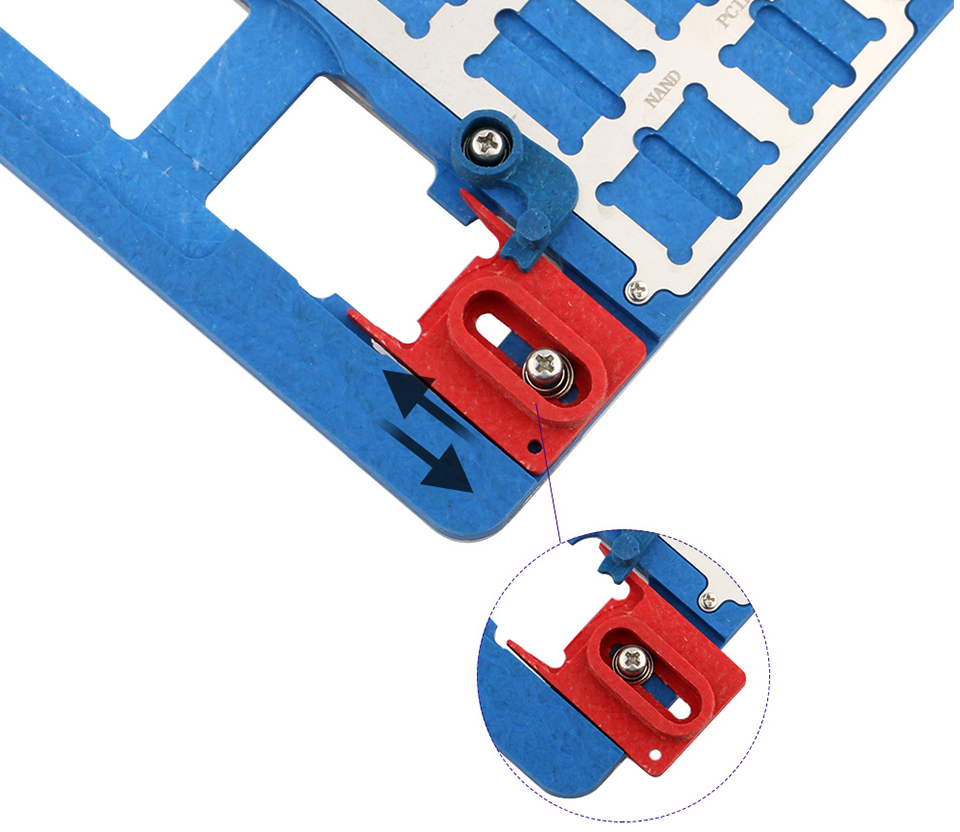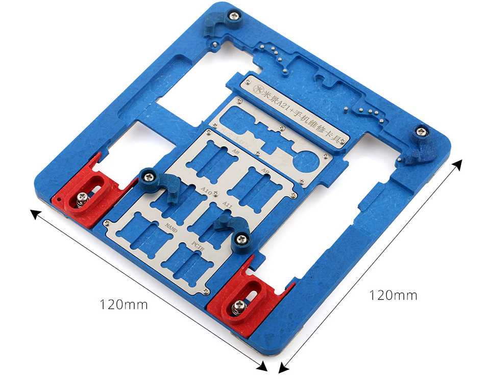 Professional PCB Holder fixture for iPhone.Made of durable material.The black layer is anti-static and high temperature resist.Precise location for IC chip repairing work.Several clips help to fasten PCB board firmly.Professional skills needed.